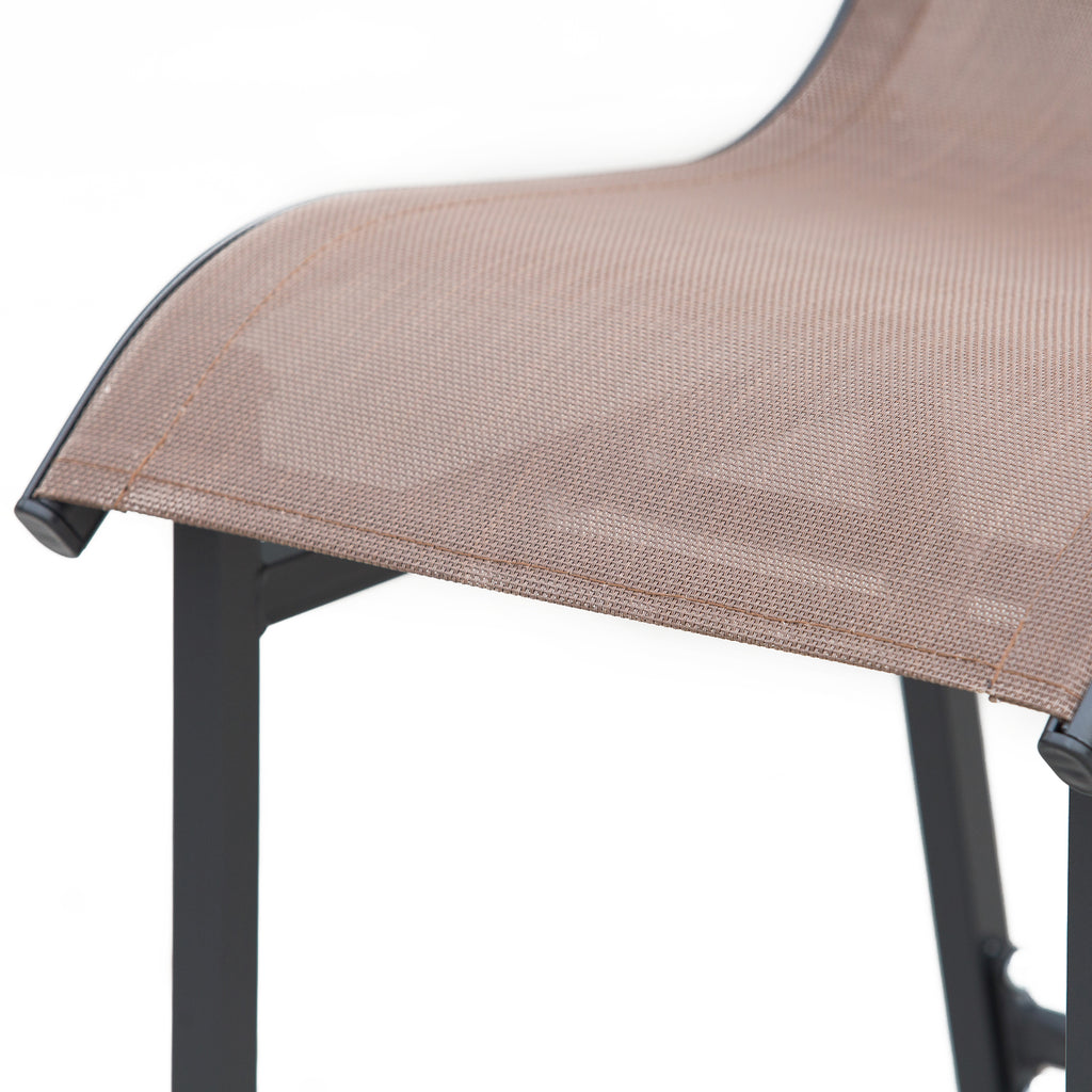 - Möbel aus Stahl, gehärtetem Glas und atmungsaktivem Netzstoff