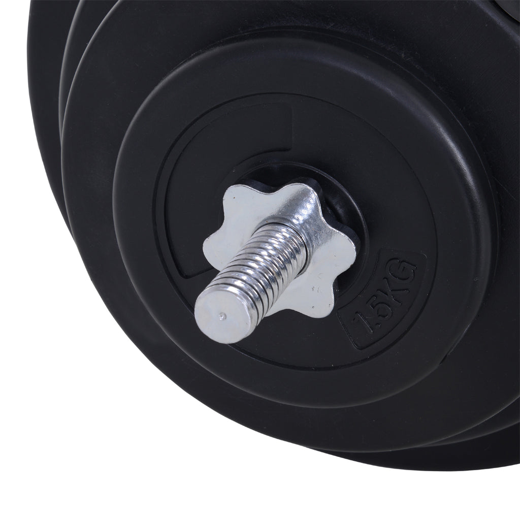 - Lieferumfang: 2 x 15 kg Gewichte, 2 x 10 kg Gewichte, 2 x 5 kg Gewichte, 2 x 1,5 kg Gewichte, 1 x Stange, 2 x Verschlussklammern