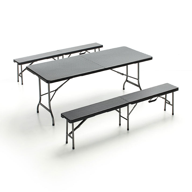 Klappbares Gartenbierset aus Eisen und Rattan Tisch und 2 Bänke Taddei Plastik 180 Schwarz