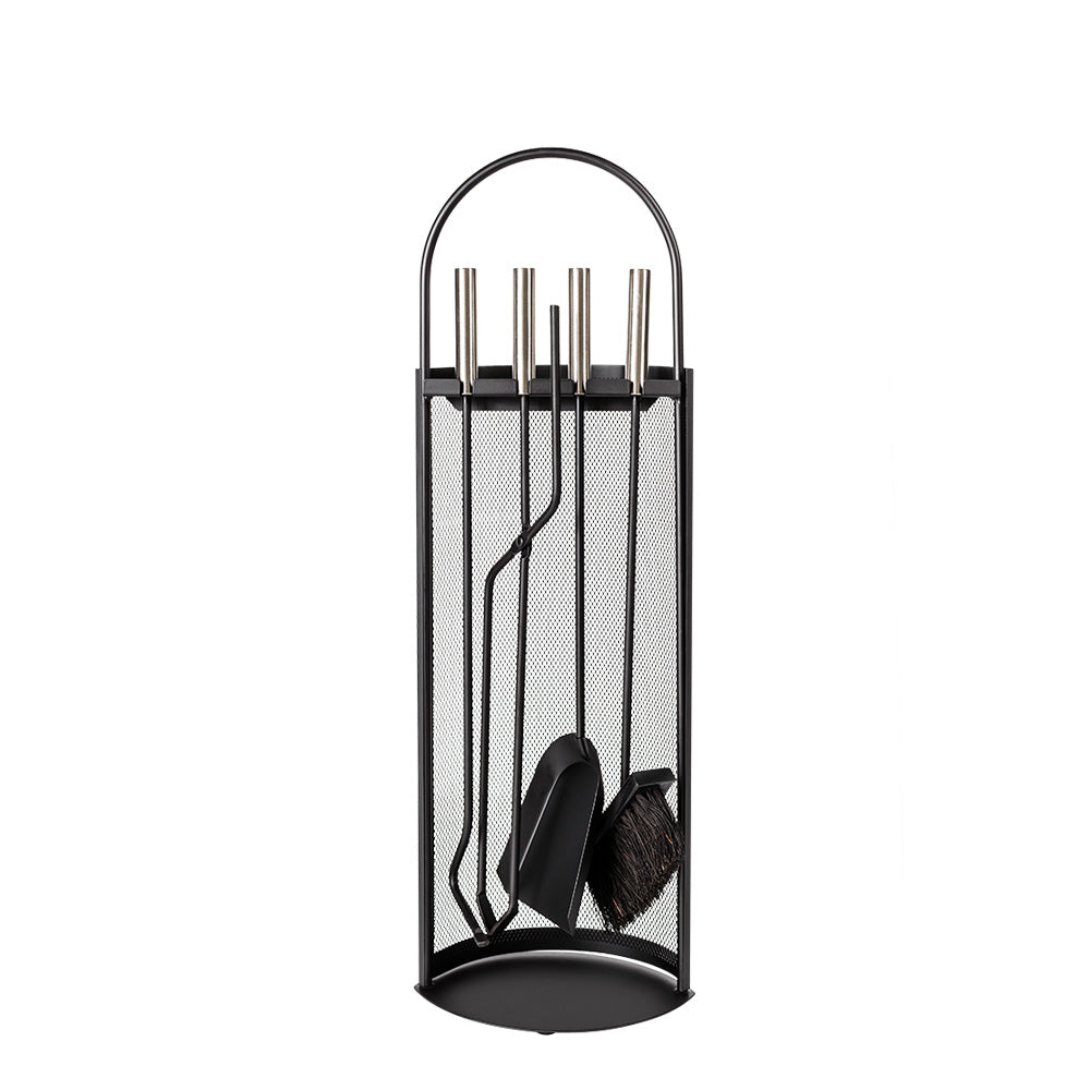 Set Camino 4 Pezzi 68x22 cm Scopino Paletta Attizzatoio e Pinza con Supporto Crash Black