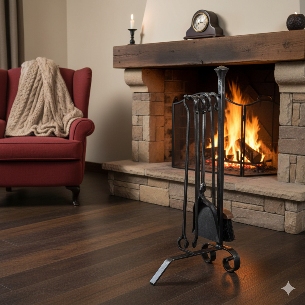 Home Bestseller Ankündigungen Kaminwerkzeuge Set Camino 4 Pezzi con Chiodo decorat...
