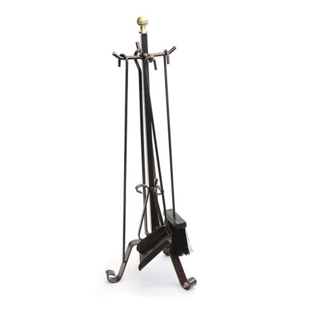 Kaminset 4-teilig aus Schmiedeeisen mit glatter Stange und Halterung