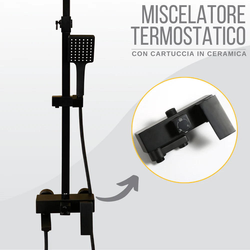 Set Colonna Doccia H82/120 cm Soffione Doccia e Laccio in Acciaio Inox Nera