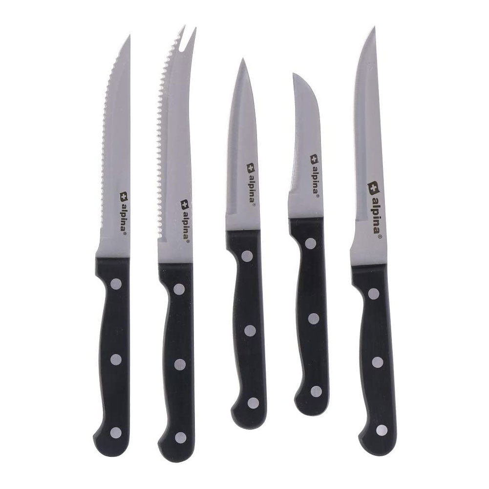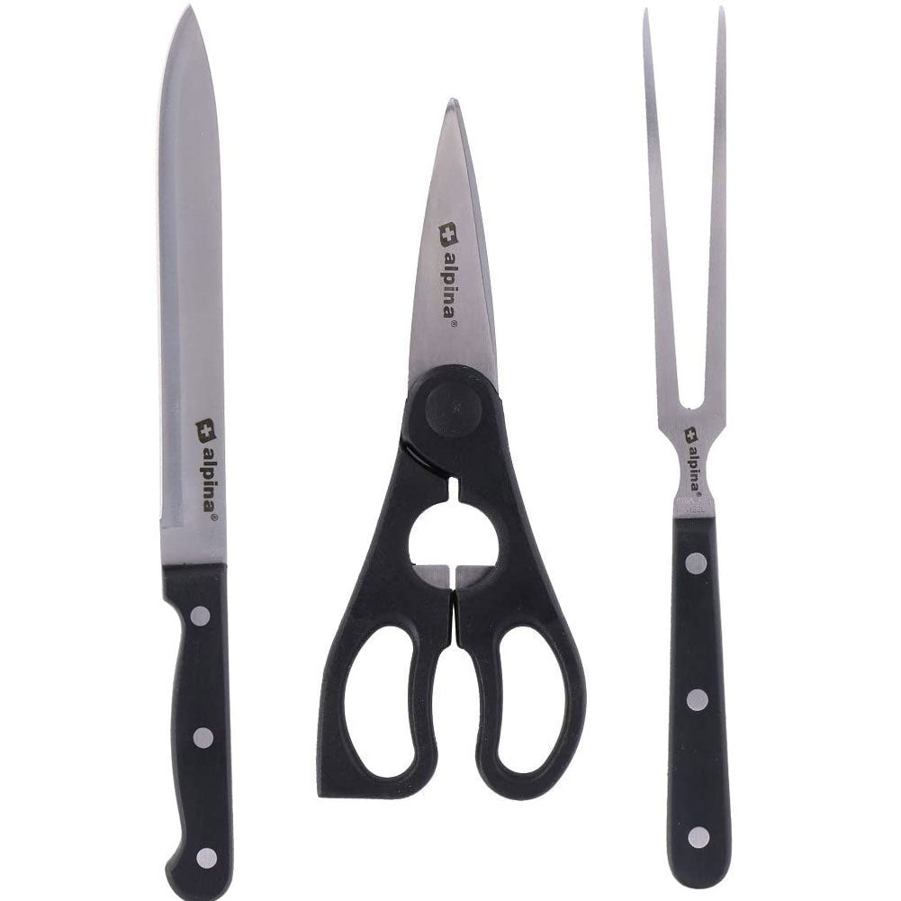 Set Coltelli In Acciaio + Ceppo Portacoltelli Legno 22 Pezzi con Forbici Cucina Alpina