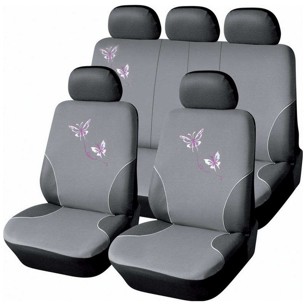 Satz Universal-Vorder- und Rücksitzbezüge aus grauem Butterfly-Polyester und Schwamm