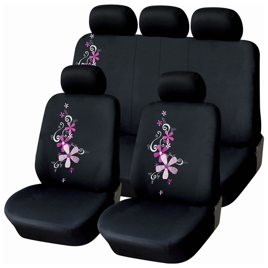 Satz Universal-Vorder- und Rücksitzbezüge aus grauem Frühlingsblumen-Polyester und Schwamm