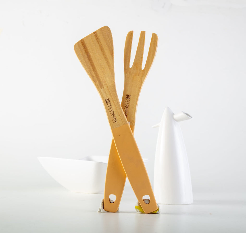- 1 x forchettone con manico arancio Iside 32,2 cm in bambù naturale