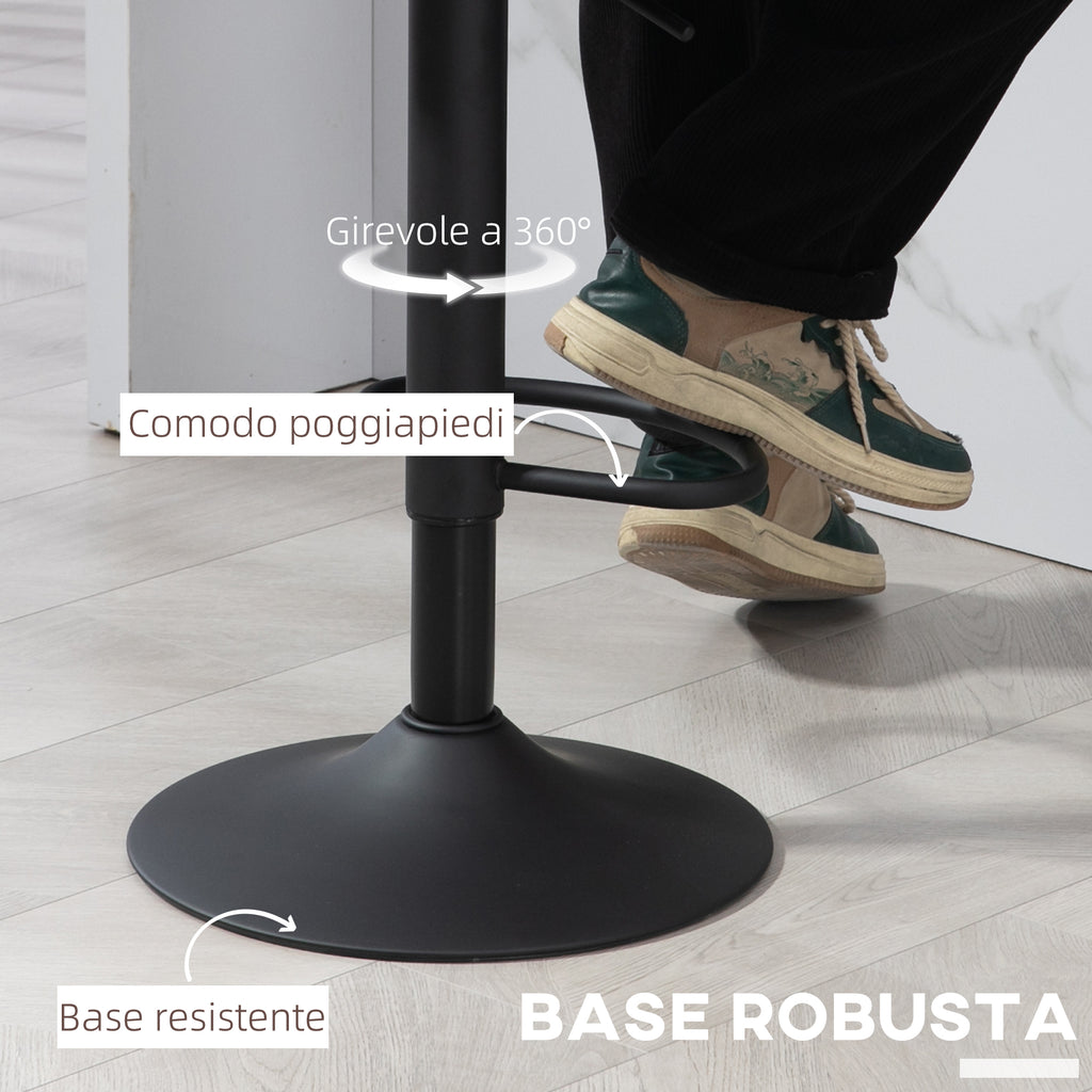Set da 2 Sgabelli da Bar con Altezza Regolabile Poggiapiedi e Seduta Girevole in Finta Pelle Nero