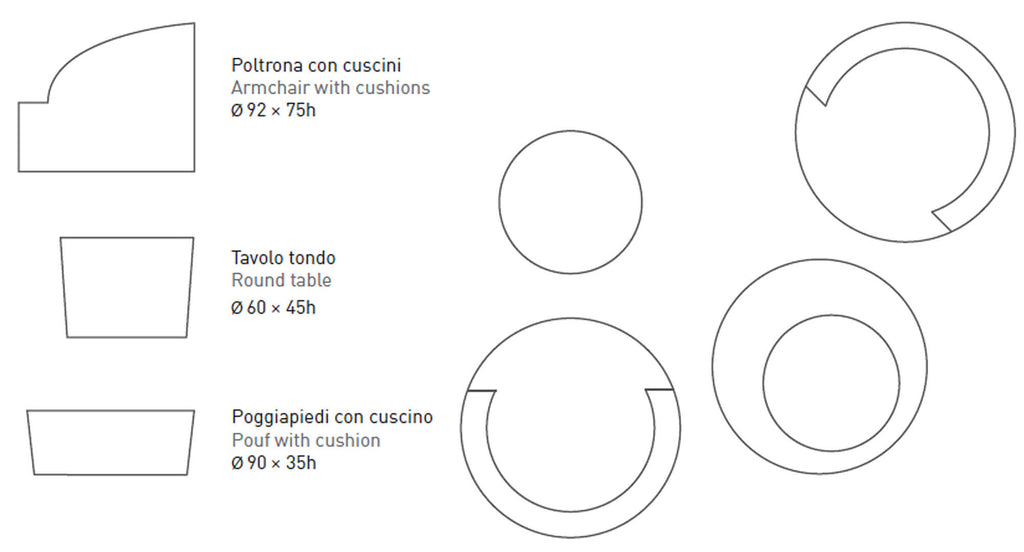 - Abmessungen Sessel (ØxH): 92 x 75 cm