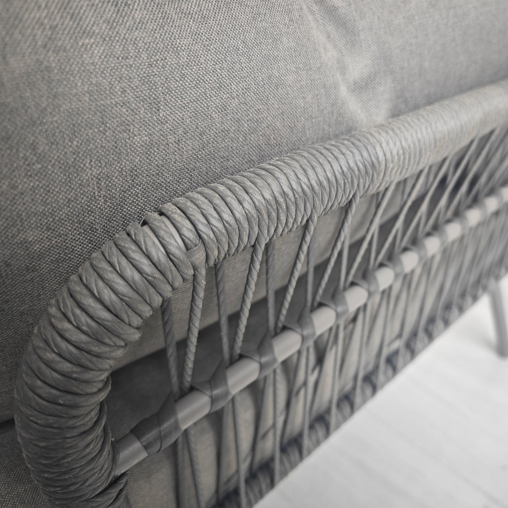 Set da Giardino 3 Pezzi in Stile Boho Divano 2 Posti Chaise Longue e Tavolino in Rattan PE Grigio Chiaro