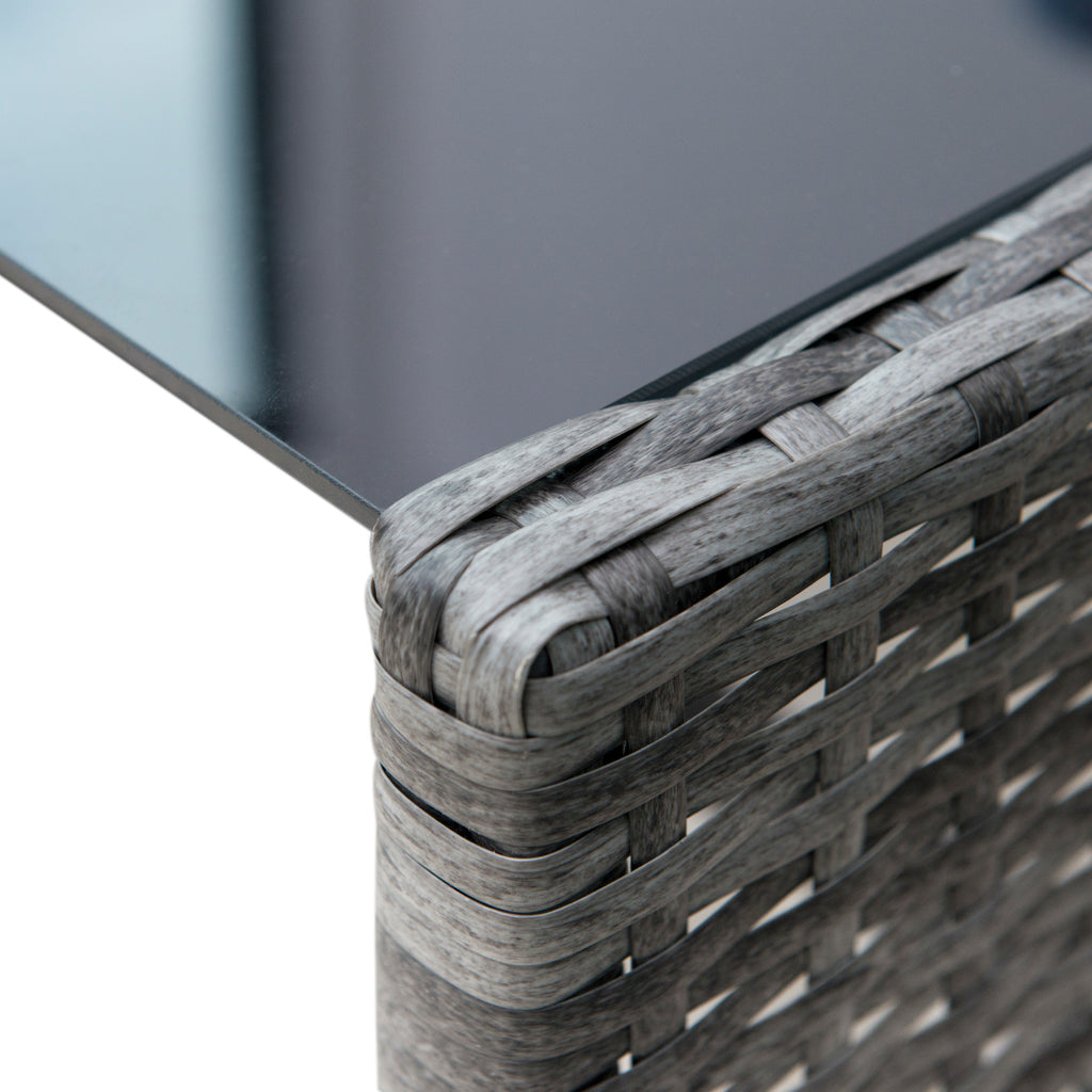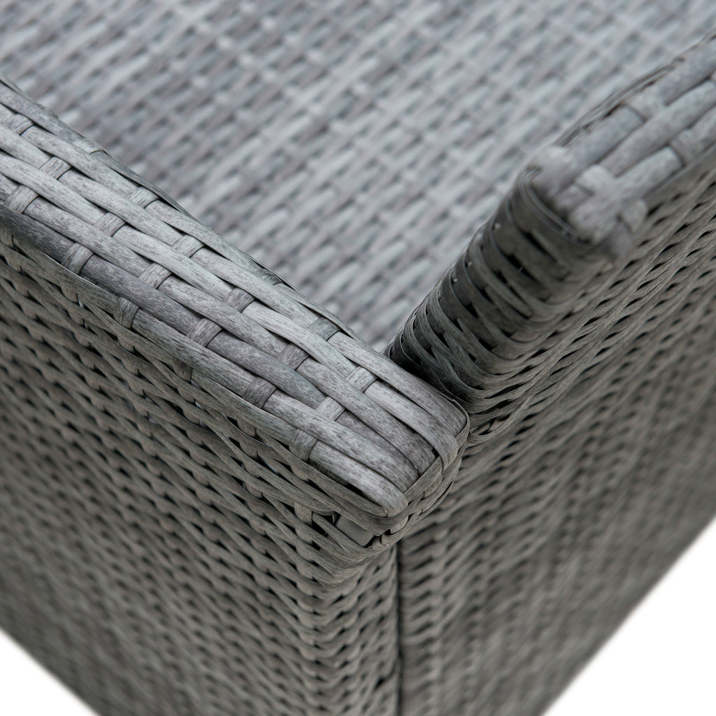 - Polsterung aus handgewebtem synthetischem Rattan, einem langlebigen Material, das sehr wenig Pflege benötigt