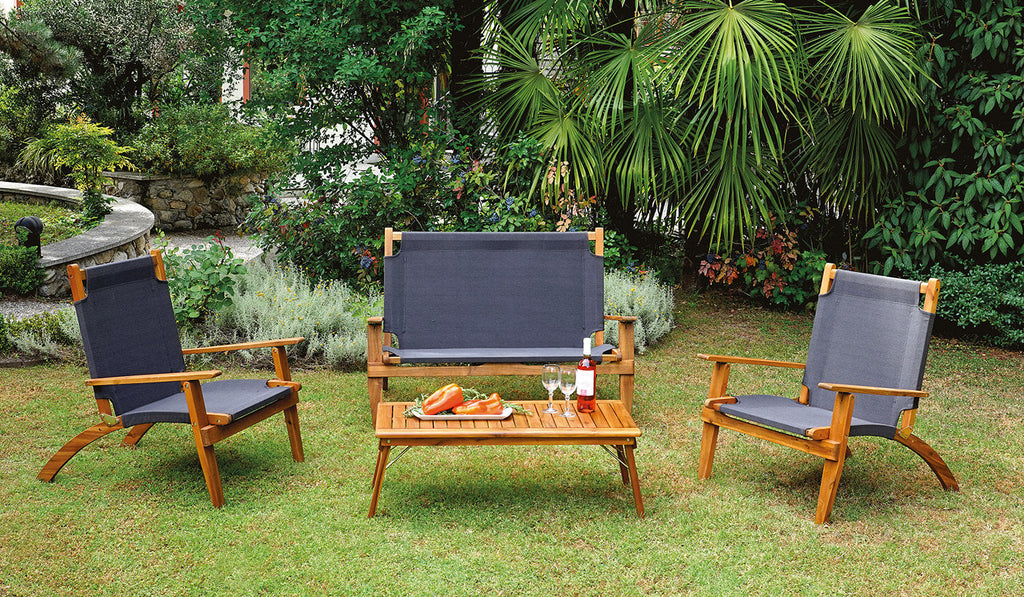 Gartengarnitur Sofa 2 Sessel und Couchtisch aus Vorghini Valladolid Holz
