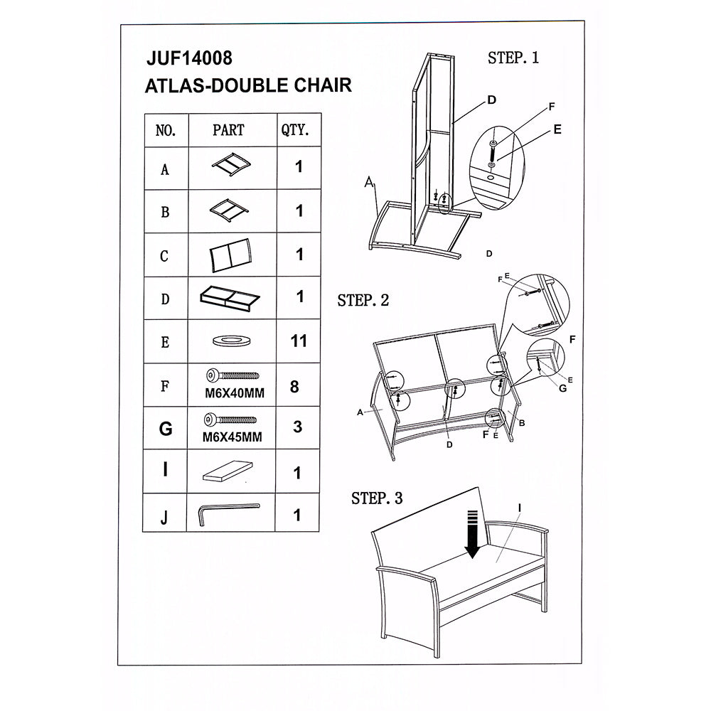 Technische Merkmale Gartengarnitur Sofa 2 Sessel und Couchtisch aus Adami Detroit Grey Polyrattan