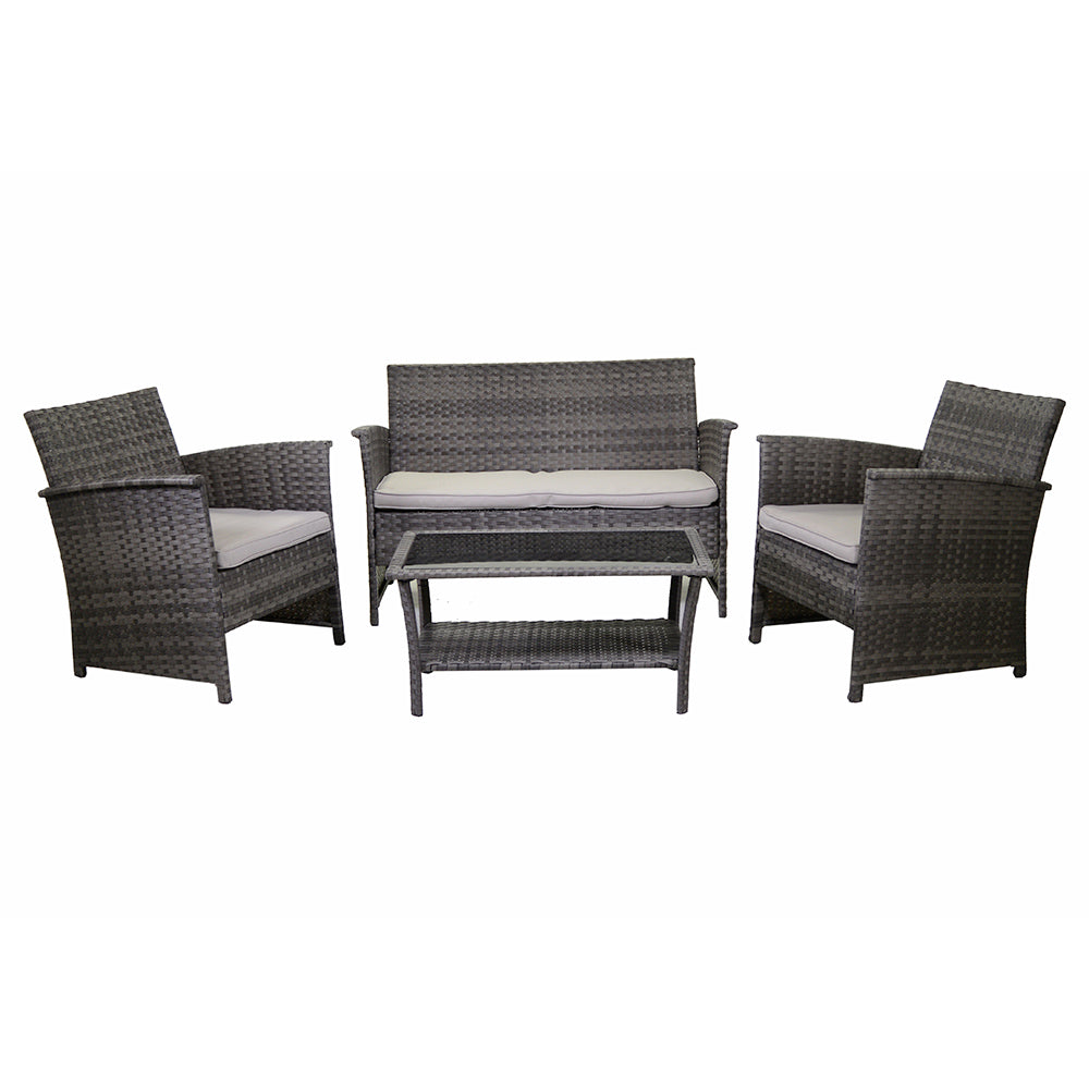 Gartengarnitur Sofa, 2 Sessel und Couchtisch aus Adami Detroit Grey Polyrattan