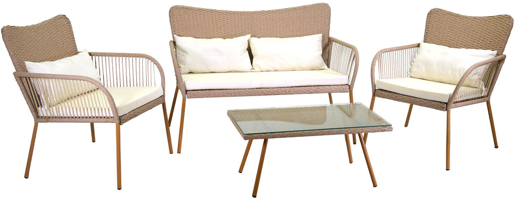 Gartenset Sofa, 2 Sessel und Couchtisch aus Adami Laredo Melange Cream Polyrattan