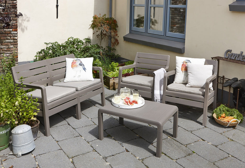 Gartengarnitur Sofa 2 Sessel und Couchtisch aus Harz Keter Delano Lounge Cappuccino