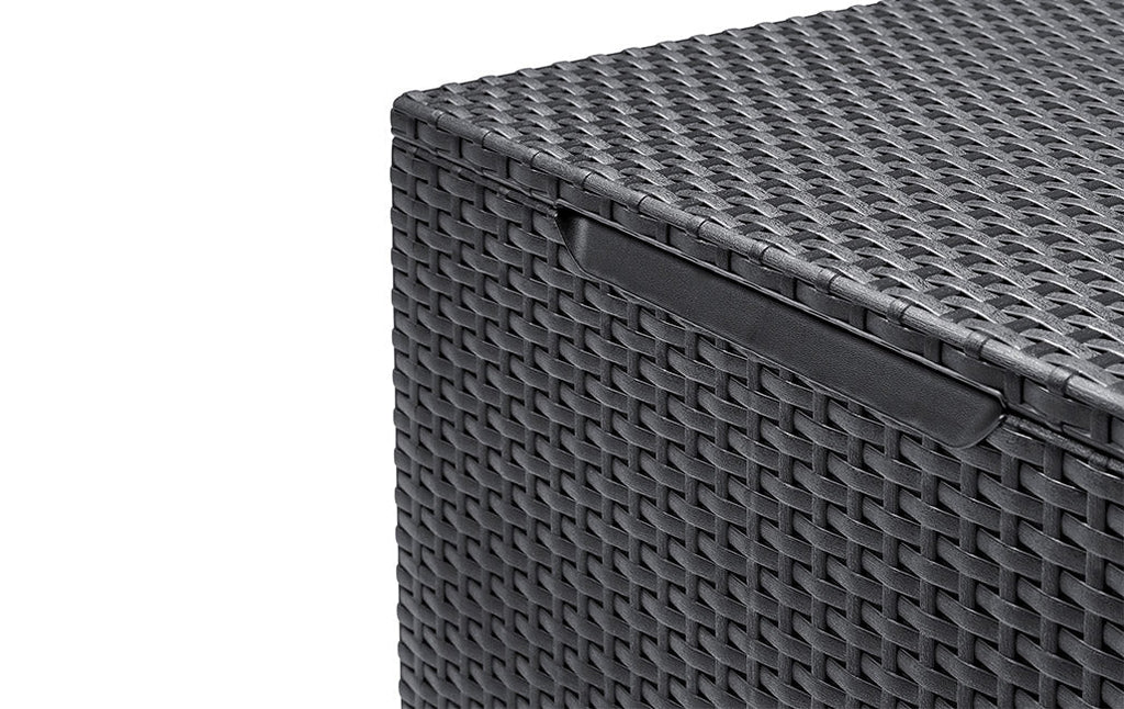 - Hergestellt aus widerstandsfähigem und langlebigem Material, das an die gewebte Oberfläche von Rattan erinnert