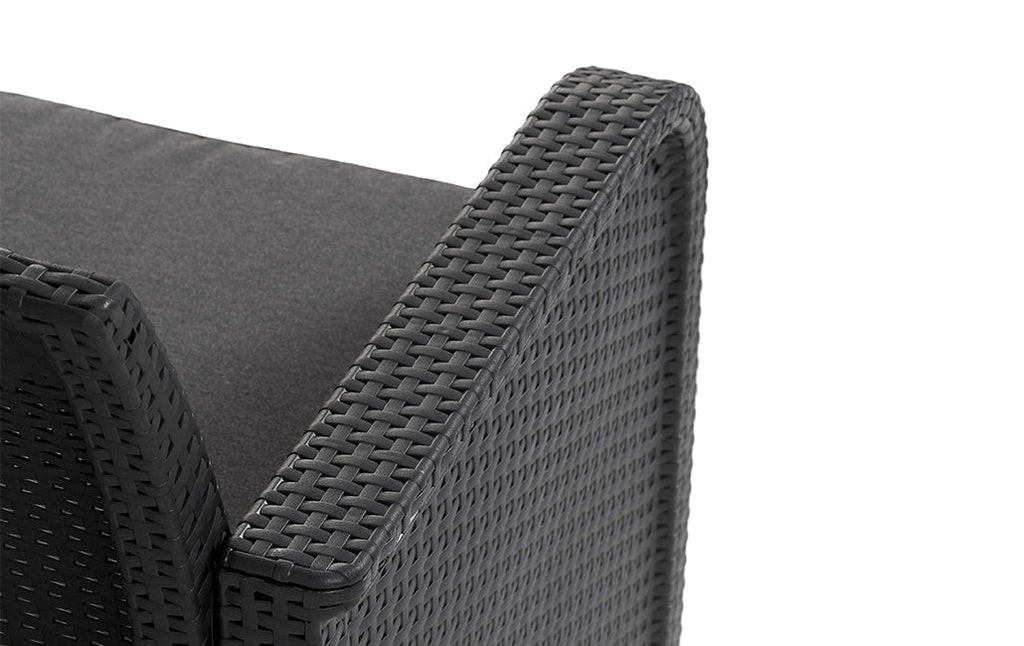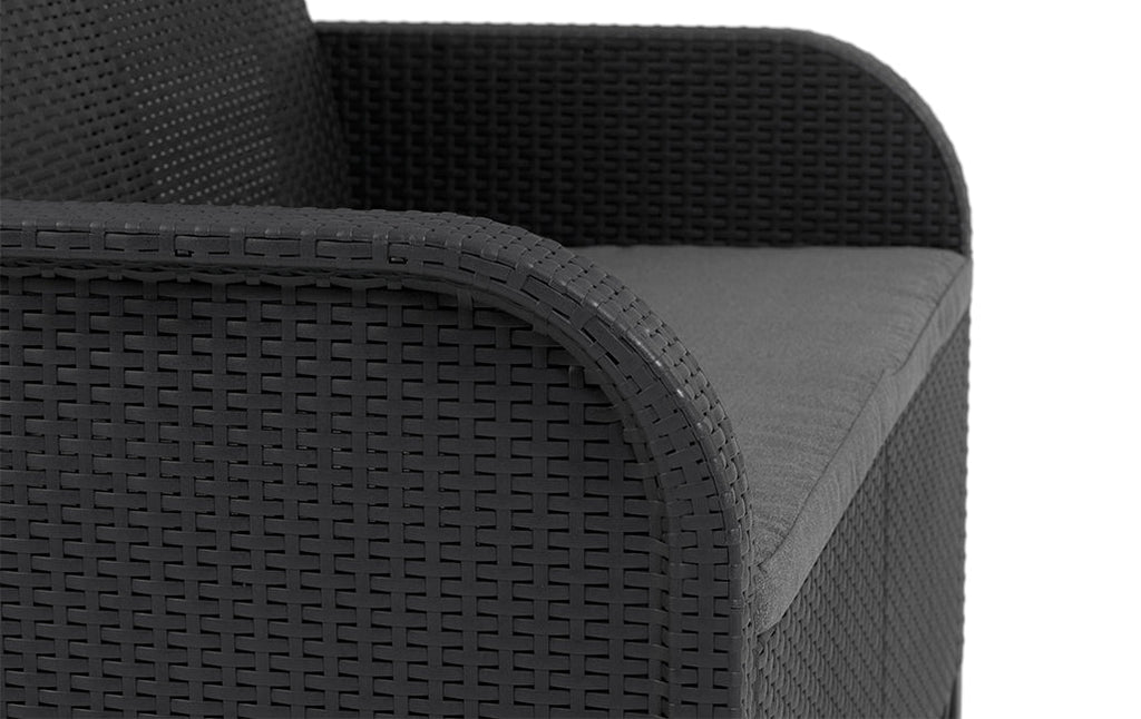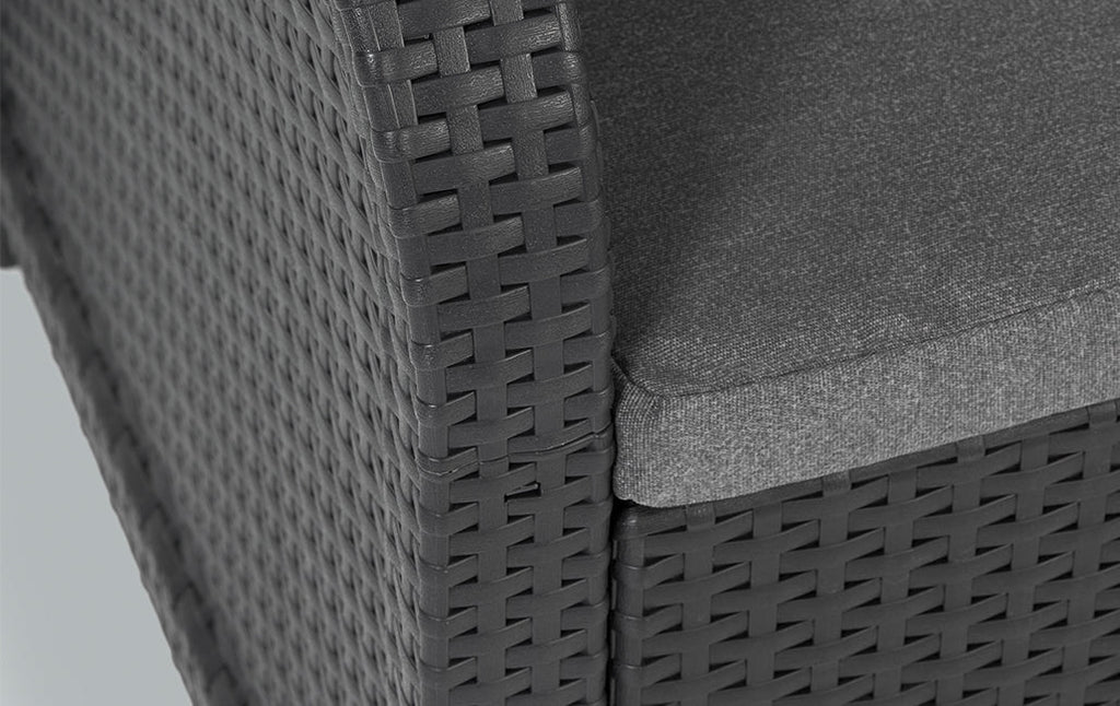 Verwandeln Sie Ihre Terrasse, Ihren Balkon oder Garten mit dem Rosalie Lounge Set von Keter. Mit runden Armlehnen und einer ergonomischen Rückenlehne wirkt Rosalie weich und freundlich. Die mitgelieferten Kissen verleihen diesem kuscheligen Set zusätzlichen Komfort in Ihren Momenten der Entspannung. Mit diesem Aufbewahrungstisch können Sie Ihre Kissen trocken und sauber aufbewahren. Das Rosalie Lounge Set bietet anpassbaren Komfort für jeden Außenbereich, ohne Kompromisse bei der Qualität einzugehen. Hergestellt aus nachhaltigen, wartungsarmen und witterungsbeständigen Materialien.