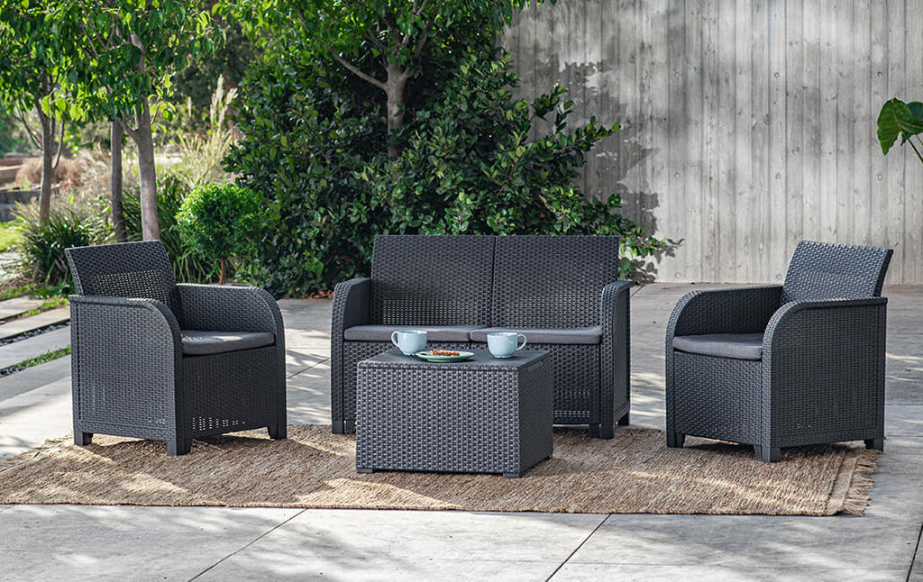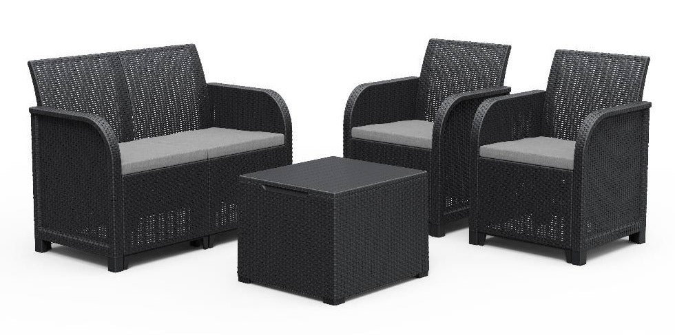 Gartengarnitur, Sofa, 2 Sessel und Couchtisch aus Keter Rosalie Lounge Anthrazitharz