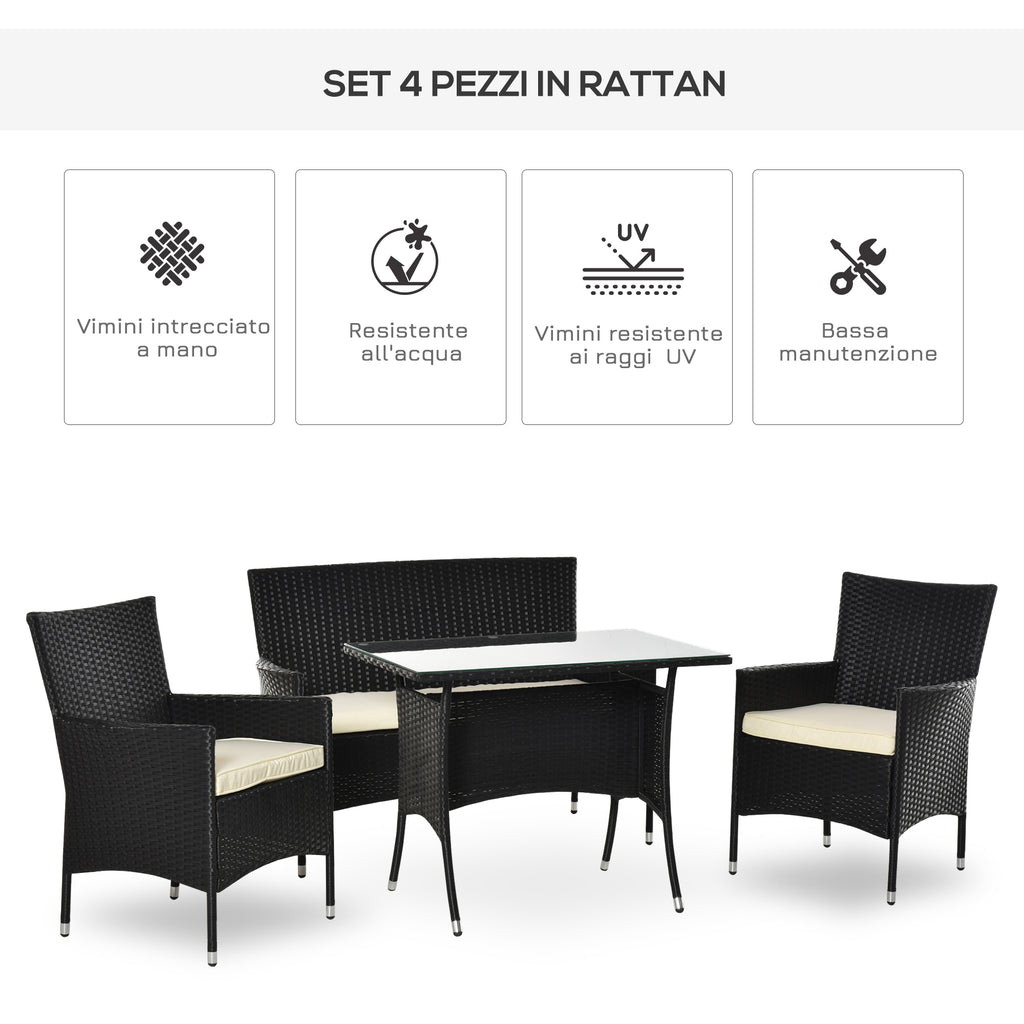 - 4-TEILIGES SET: Dieses 4-teilige Gartenmöbel-Set besteht aus 2 Sesseln, einem 2-Sitzer-Sofa und einem Tisch. Der Rahmen aus PE-Rattan verleiht ihm eine elegante Optik. Es ist ideal, um entspannte Momente mit Familie oder Freunden zu verbringen.