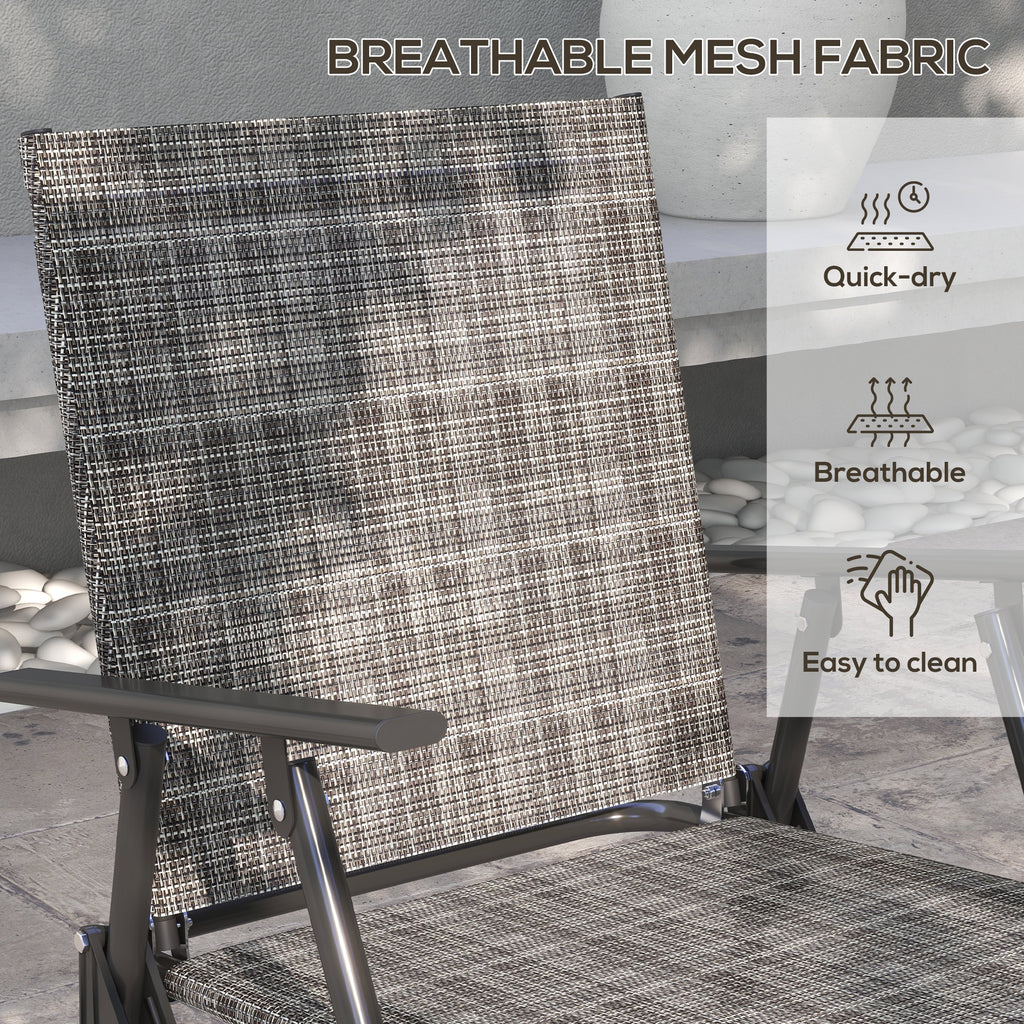 Set da Giardino Divano 2 Poltrone Pieghevoli e Tavolino Piano in Vetro Grigio
