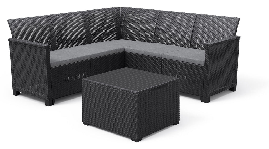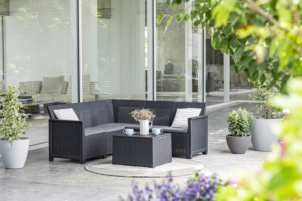Gartengarnitur Ecksofa und Couchtisch aus Keter Emma Corner anthrazitfarbenem Harz
