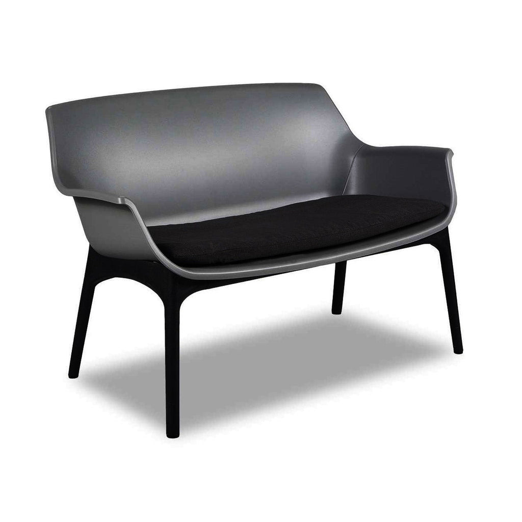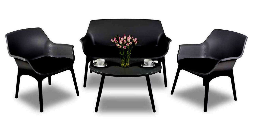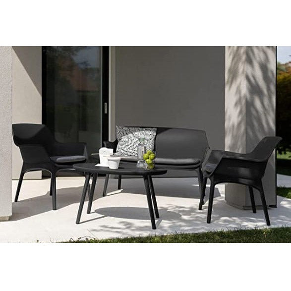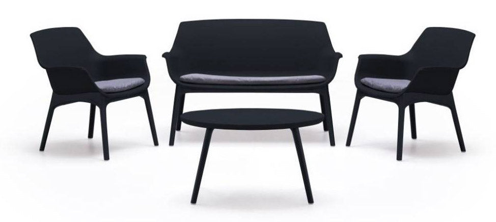 Gartengarnitur, Sofa, Sessel und Couchtisch aus graphitfarbenem Polypropylen