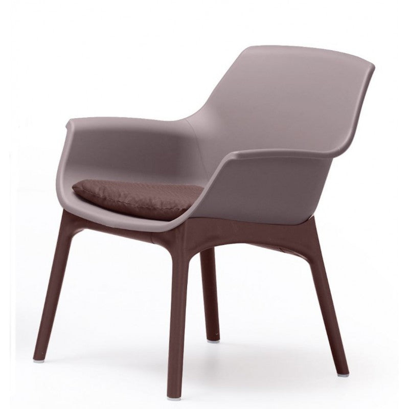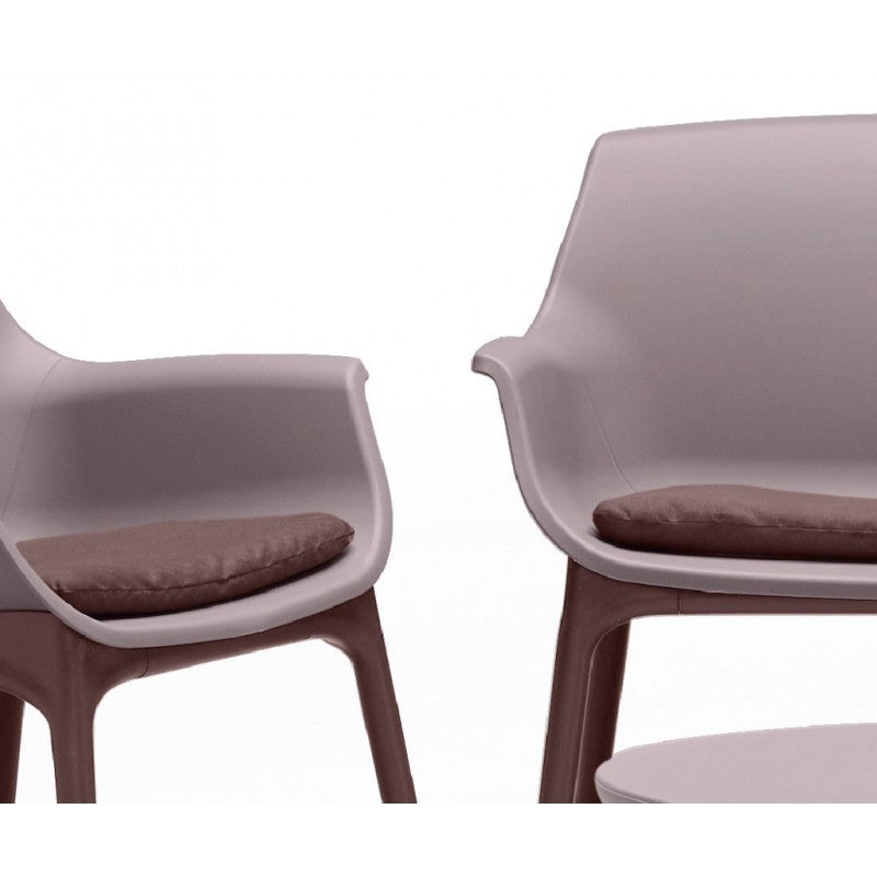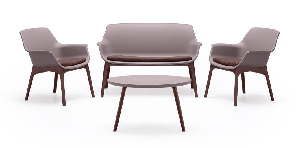 Es besteht vollständig aus zweifarbigem Polypropylen und zeichnet sich durch seinen einladenden, bequemen und umhüllenden Sitz aus, der durch weiche Kissen mit abnehmbaren Bezügen im gleichen Farbton wie das Wohnzimmer mit einer Dicke von 6 cm fein vervollständigt wird.