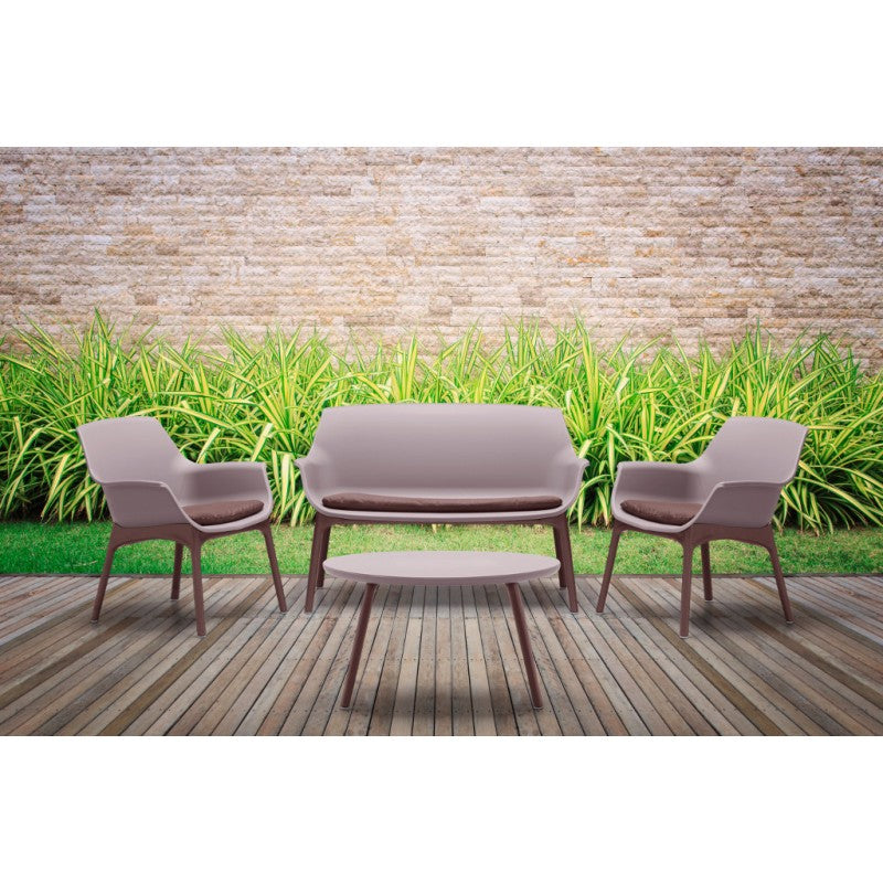 Gartengarnitur, Sofa, Sessel und Couchtisch aus vandibraunem Polypropylen