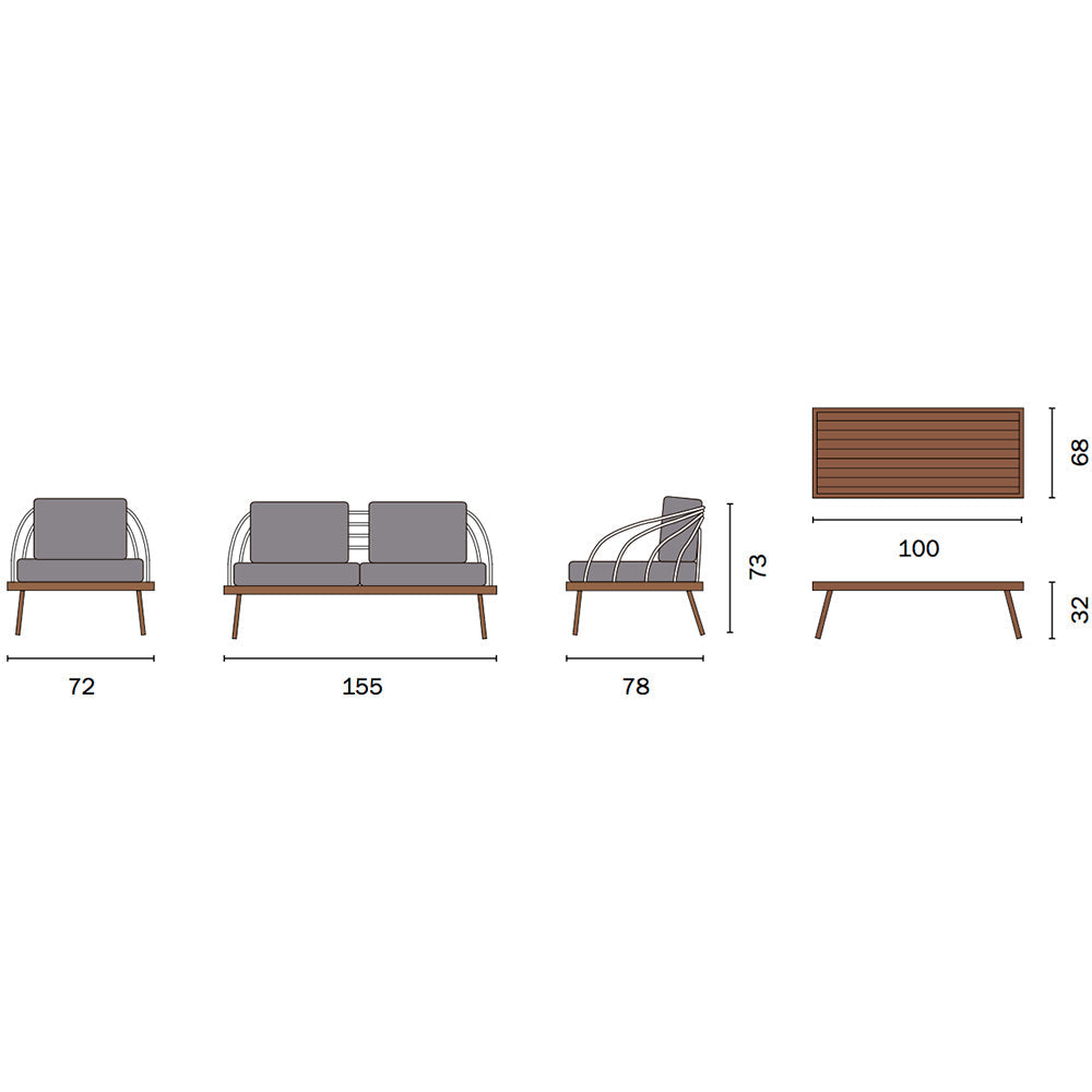 Gartenset aus Aluminium und Seil Vorghini Imperia Holz und Grau