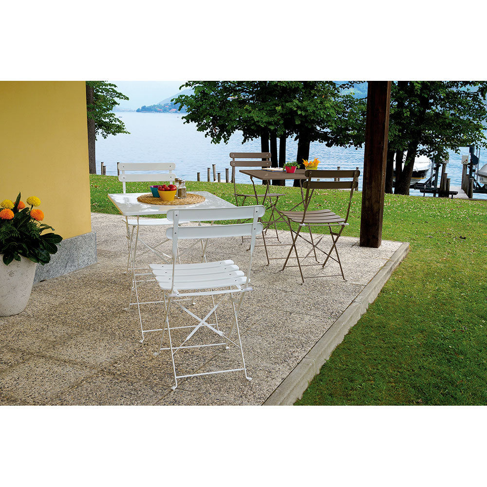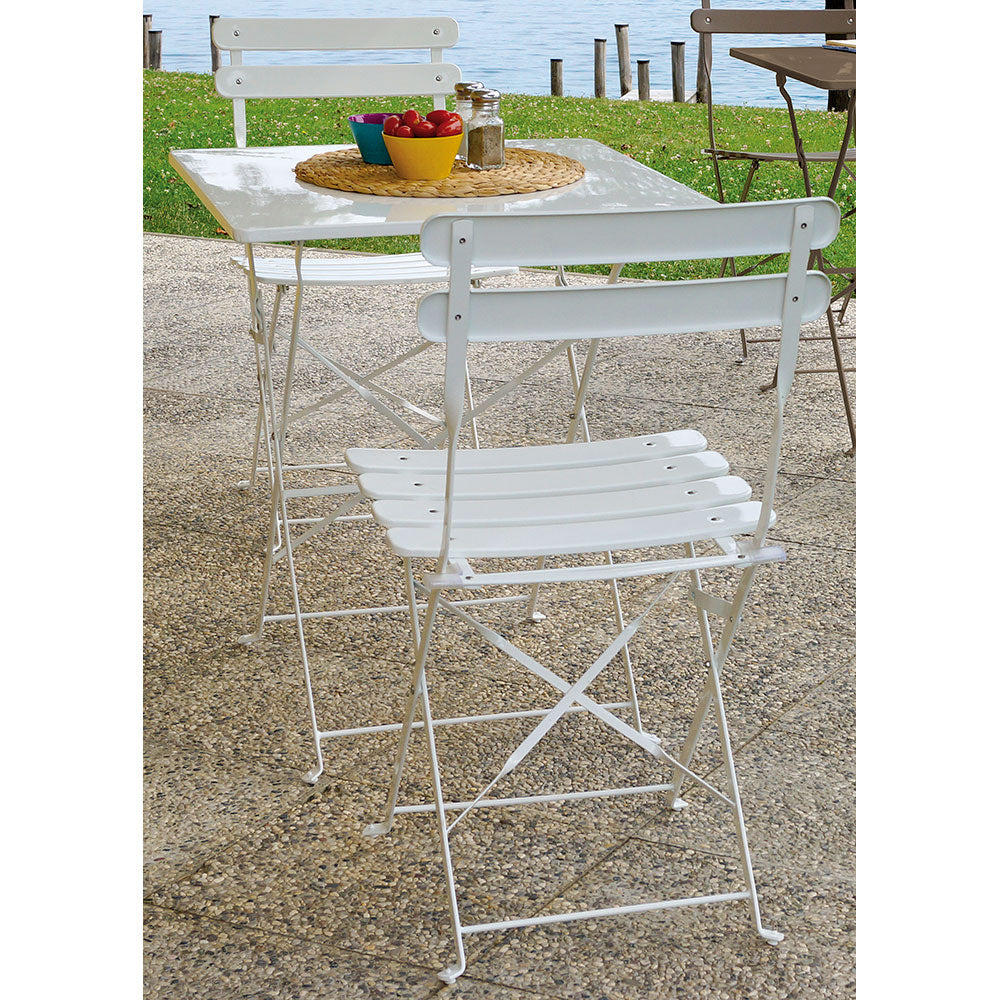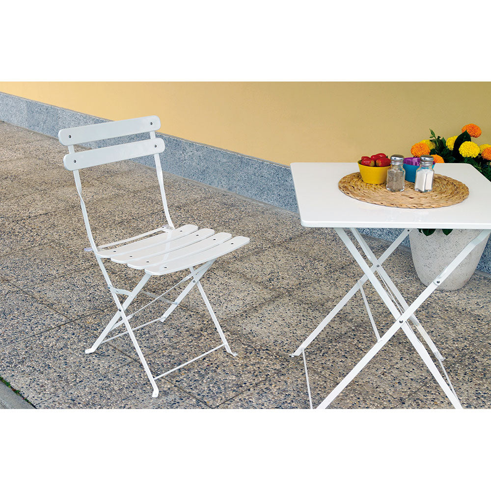 Garten-Lounge-Set 1 Tisch 2 Eisen-Klappstühle 60 x 60 cm Vorghini Elfenbein quadratisch Bistro