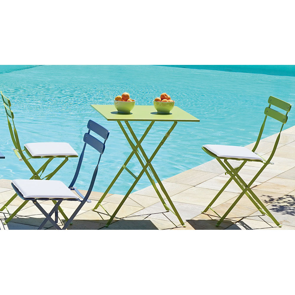 Garten-Lounge-Set 1 Tisch 2 Eisen-Klappstühle 60 x 60 cm Vorghini Bistro quadratisch grün