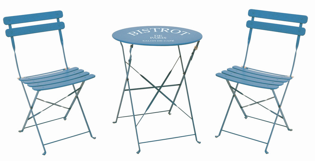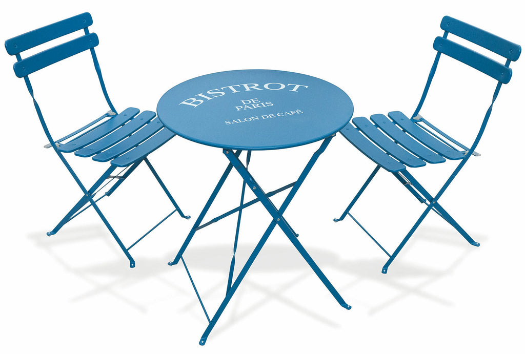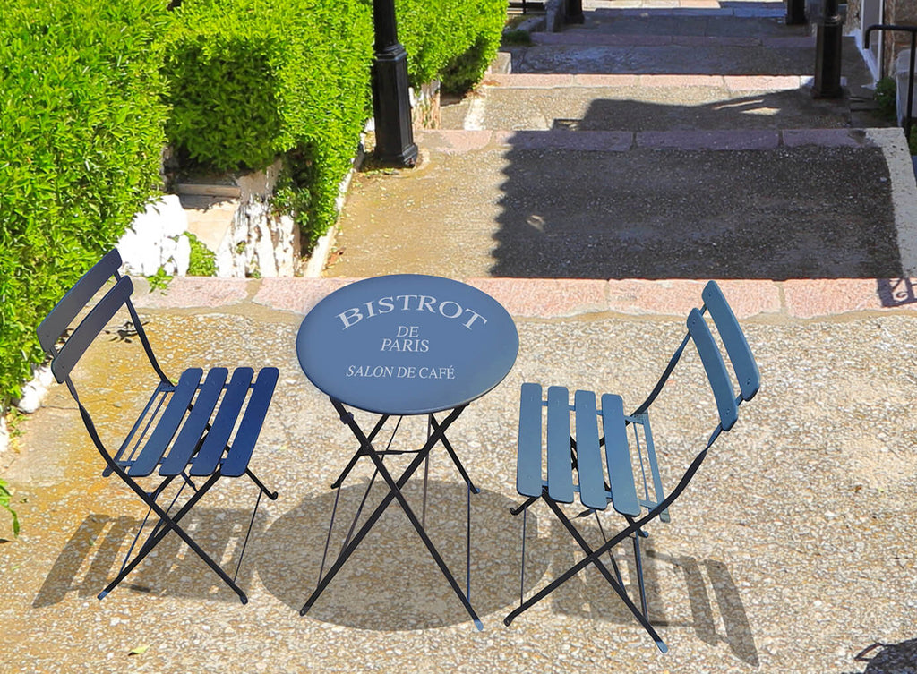 Zusammenklappbares Gartenset aus Eisen mit Tisch und 2 Stühlen Soriani Bistrot Blue