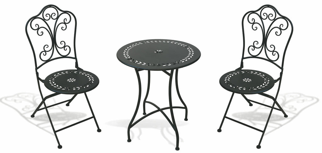 Soriani Provence Frühstückseisen Klappbares Gartenset mit Tisch und 2 Stühlen Schwarz
