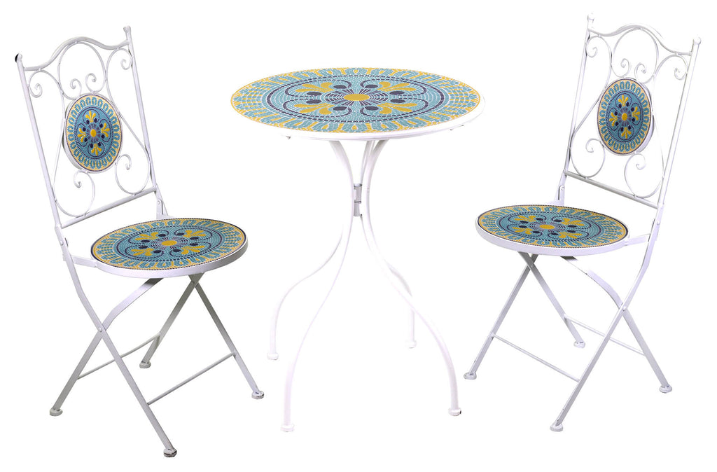Zusammenklappbares Gartenset mit Metallmosaik mit Tisch und 2 weißen Stühlen Adami Brindisi