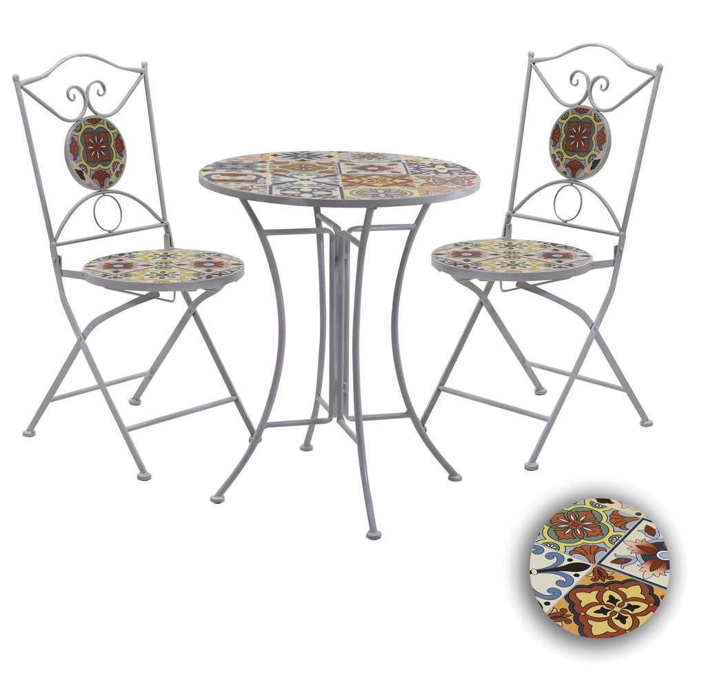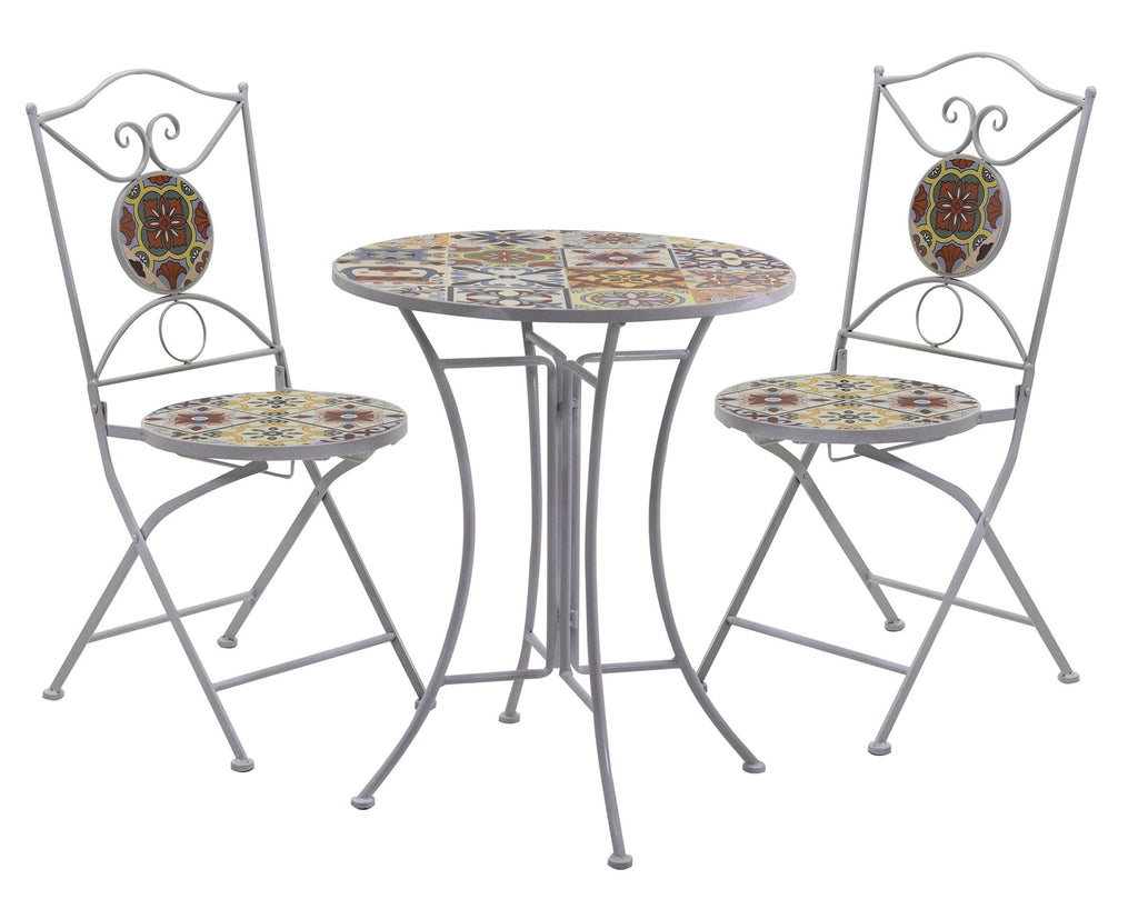 Klappbares Gartenset aus Metall mit Tisch und 2 Stühlen Adami Tropea White
