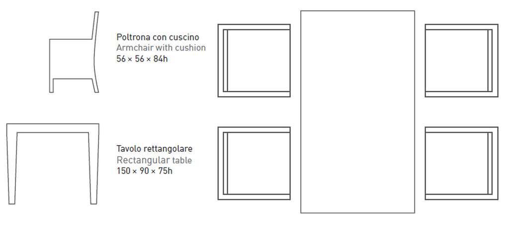 Gartentisch und 4 Sessel aus Ranieri Extrò Textilene