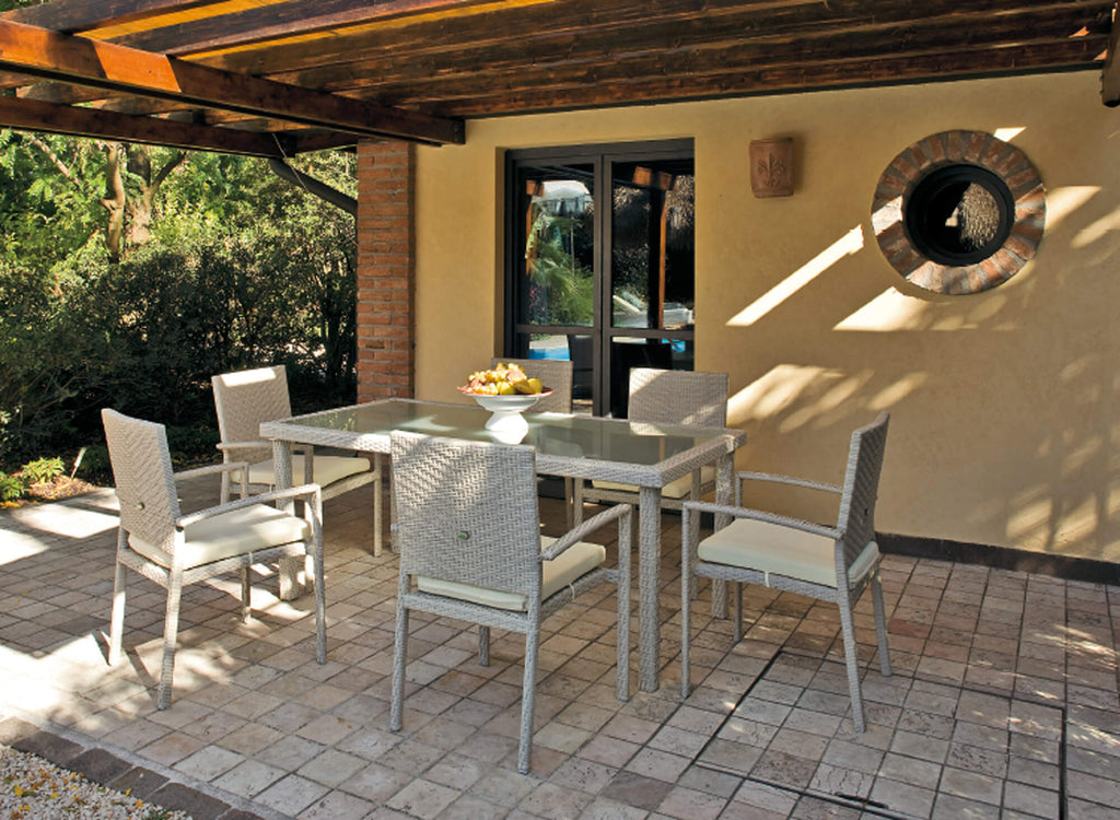 Gartenset Tisch und 6 Korbstühle Ranieri Malindi