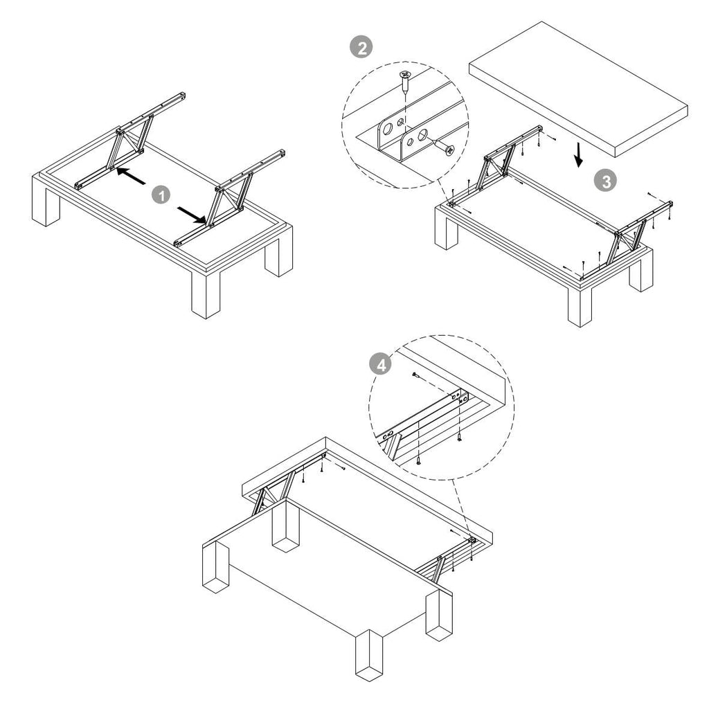 Das Hebemechanik-Set verwandelt einen kleinen Tisch in einen praktischen Multifunktionstisch.