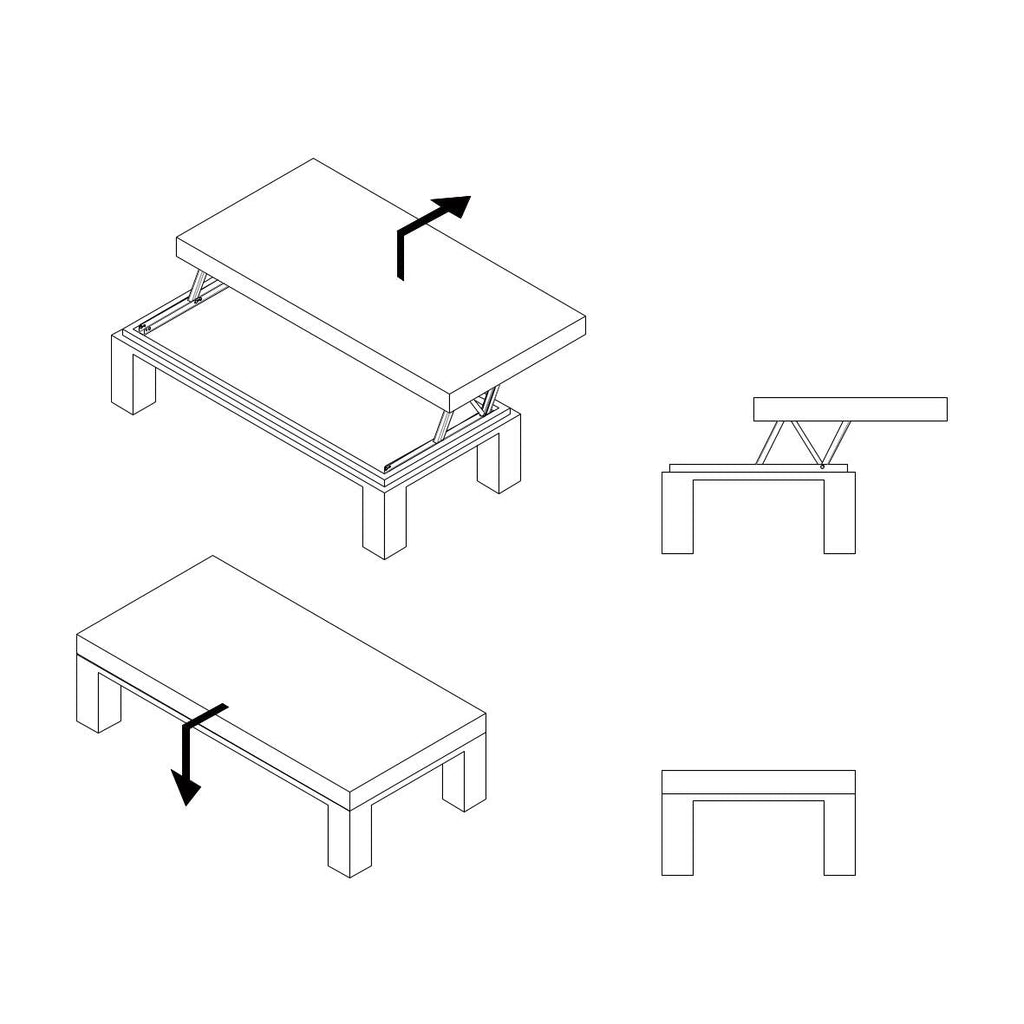 - Es ermöglicht Ihnen, einen Couchtisch in einen multifunktionalen Tisch zu verwandeln.