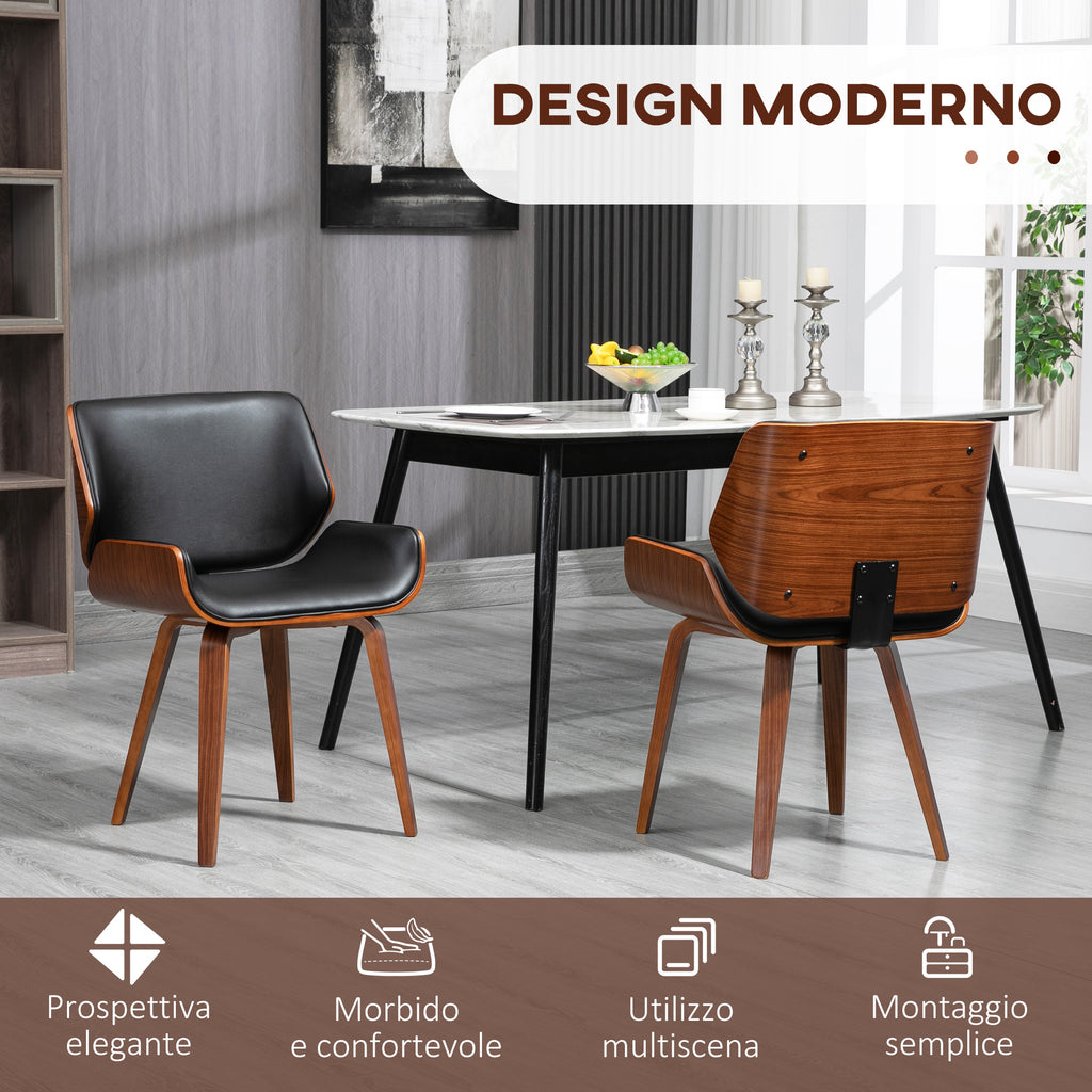 Set di 2 Sedie da Pranzo Stile Vintage Imbottite in Legno e Finta Pelle PU Nero e Marrone