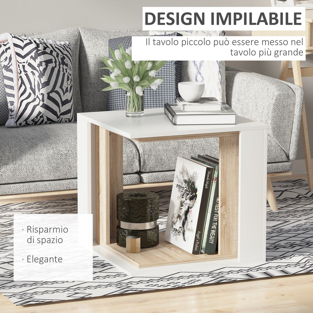 Set mit 2 modularen Couchtischen in Weiß und Eiche 50 x 50 x 48 cm/40 x 40 x 44 cm