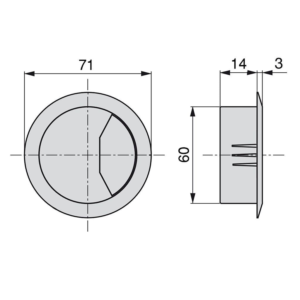 - Runde Kabelverschraubung zum Einbau in die Möbeloberfläche.