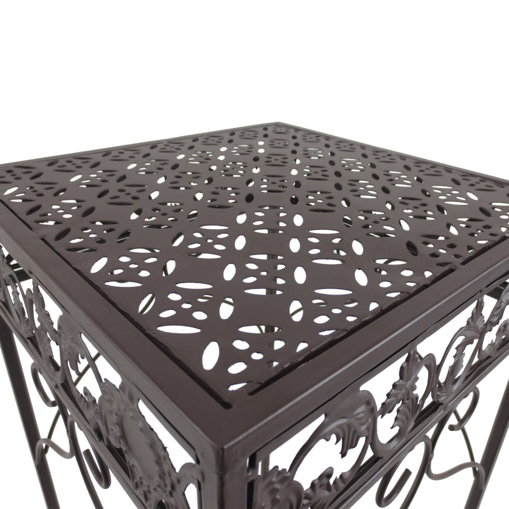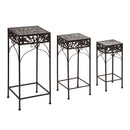 Dieses Set aus 3 Pflanzenhockern besteht aus reich verziertem Schmiedeeisen.