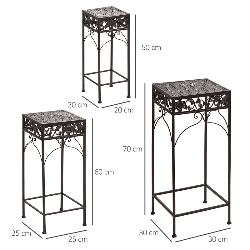Set mit 3 klassischen braunen Eisen-Pflanzenständern
