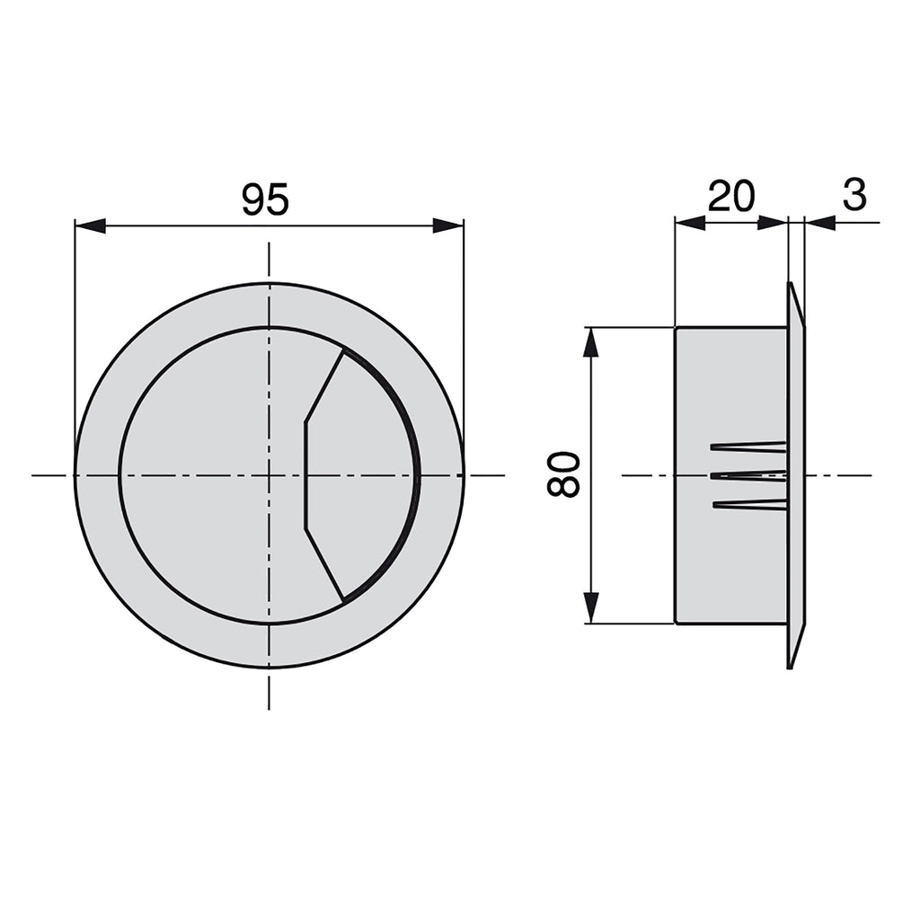 - Runde Kabelverschraubung zum Einbau in die Möbeloberfläche.
