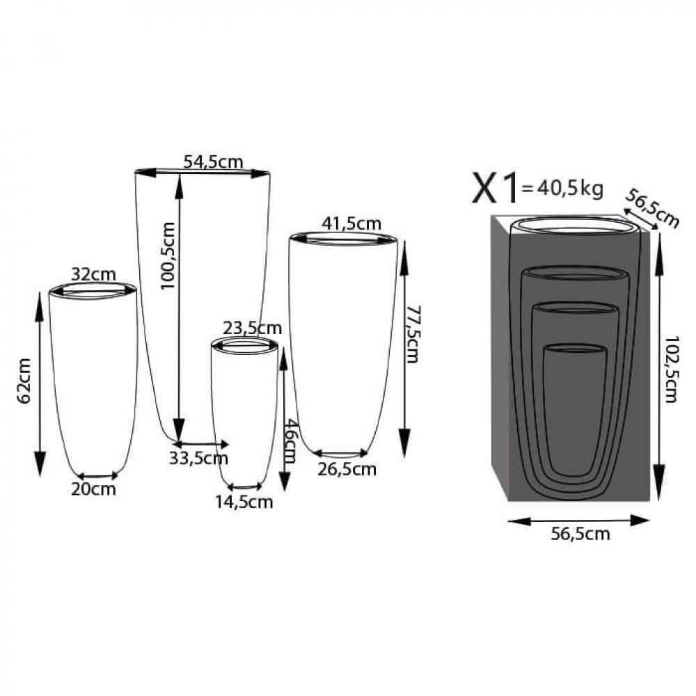 Set mit 4 Orchideenvasen aus grauem Fibre Clay