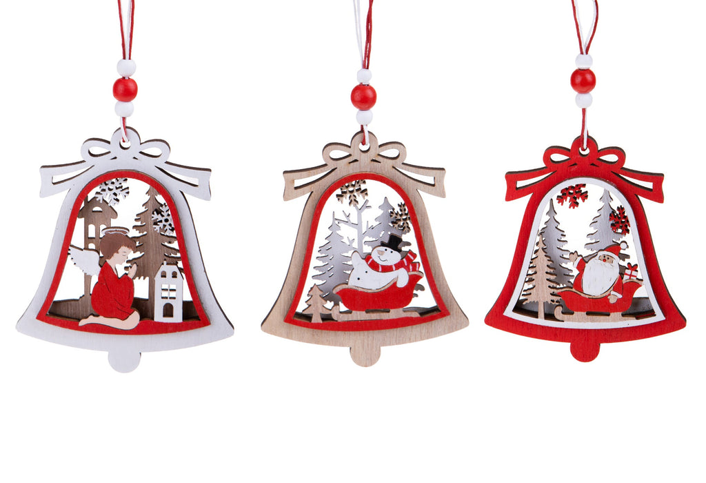 Set mit 48 Holz-Weihnachtsglocken 10,5 cm Rot