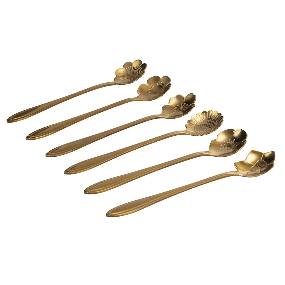 Set di Cucchiaini 6 Pezzi 12,5x2,5x0,5 cm in Acciaio Inox VdE Tivoli 1996 Luxury Foglie Oro