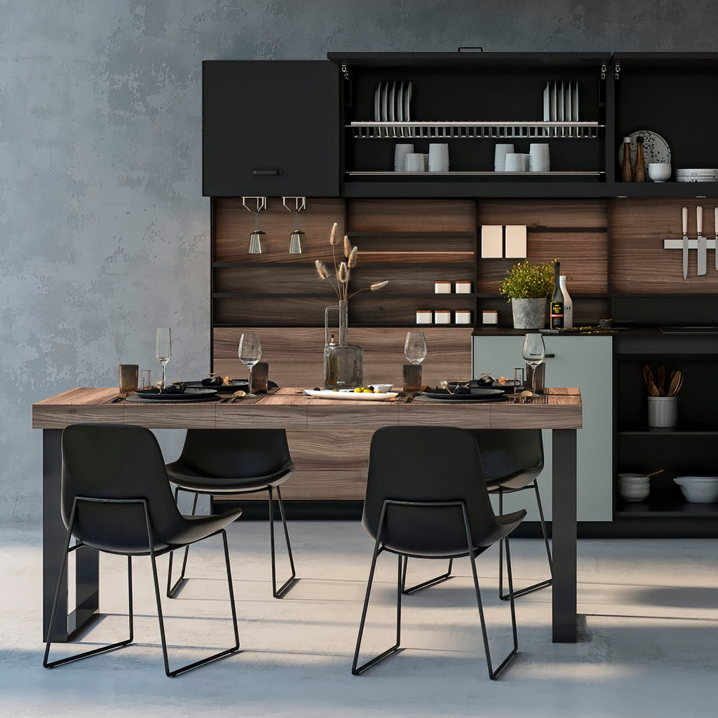 Set aus 2 rechteckig geformten Tischbeinen, ideal für Küchen- und Esszimmertische. Der feste Fuß ist 720 mm hoch und es kann zwischen zwei Breitenmaßen 600 mm und 800 mm gewählt werden.
